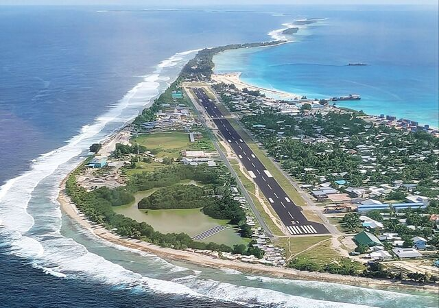 해수면 상승으로 국가 소멸 위기에 직면한 투발루의 푸나푸티 국제공항 전경. 위키피디아